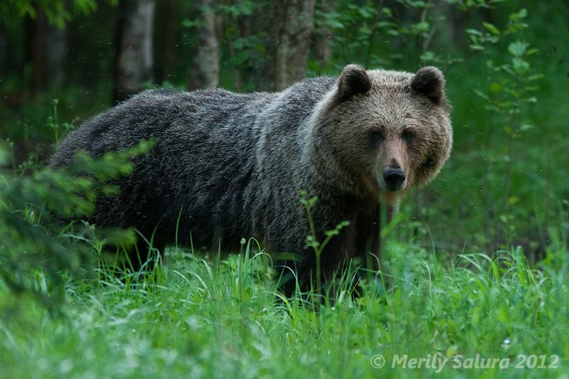 According to the latest data available, there are approximately 700 bears in Estonia. A hundred years ago, however, only 30 bears could be found. European brown bear, the only subspecies of bear that can be found in Estonia, is the one with the biggest habitat and loves coniferous, mixed and mountain forests, better still if there happen to be bogs and blowdown in the forest. In areas with a tougher climate – like here – their year contains a period of hibernation, so there is no hope of spotting a bear from November to March or April.